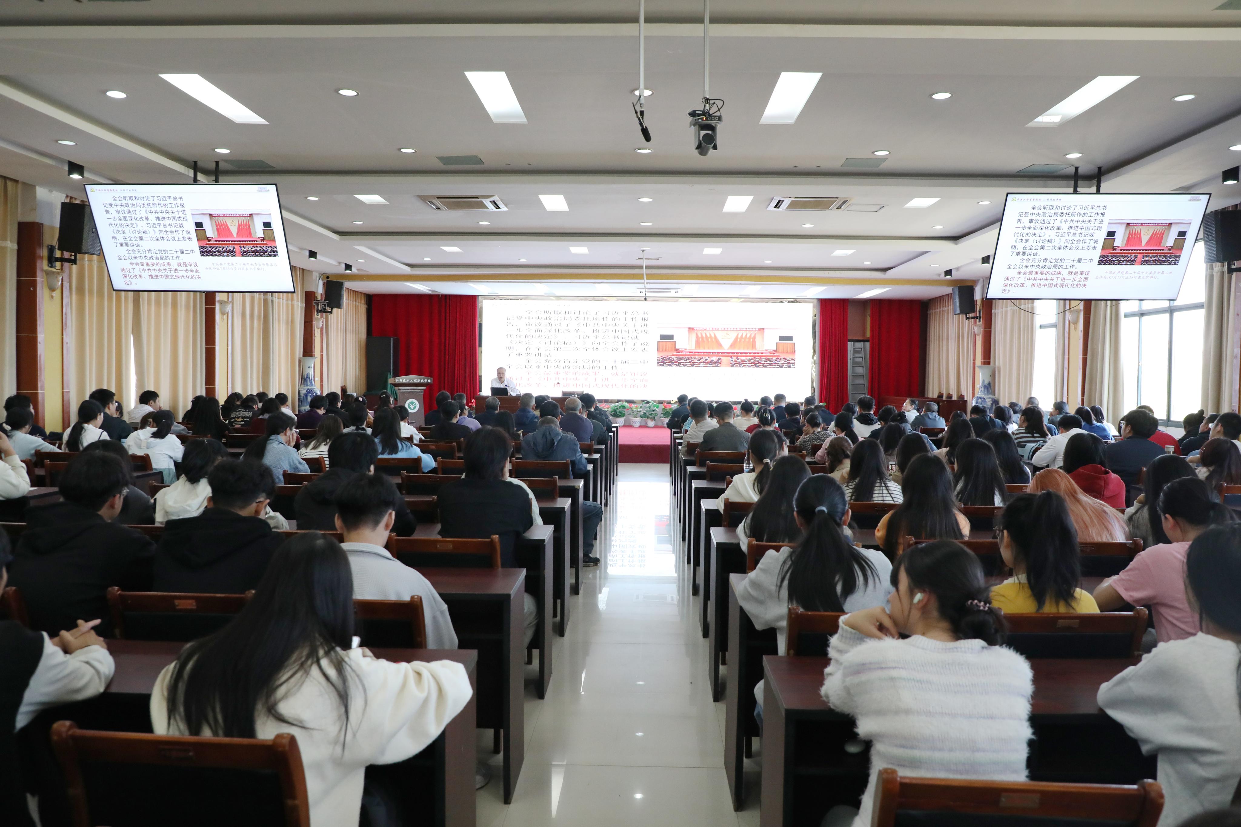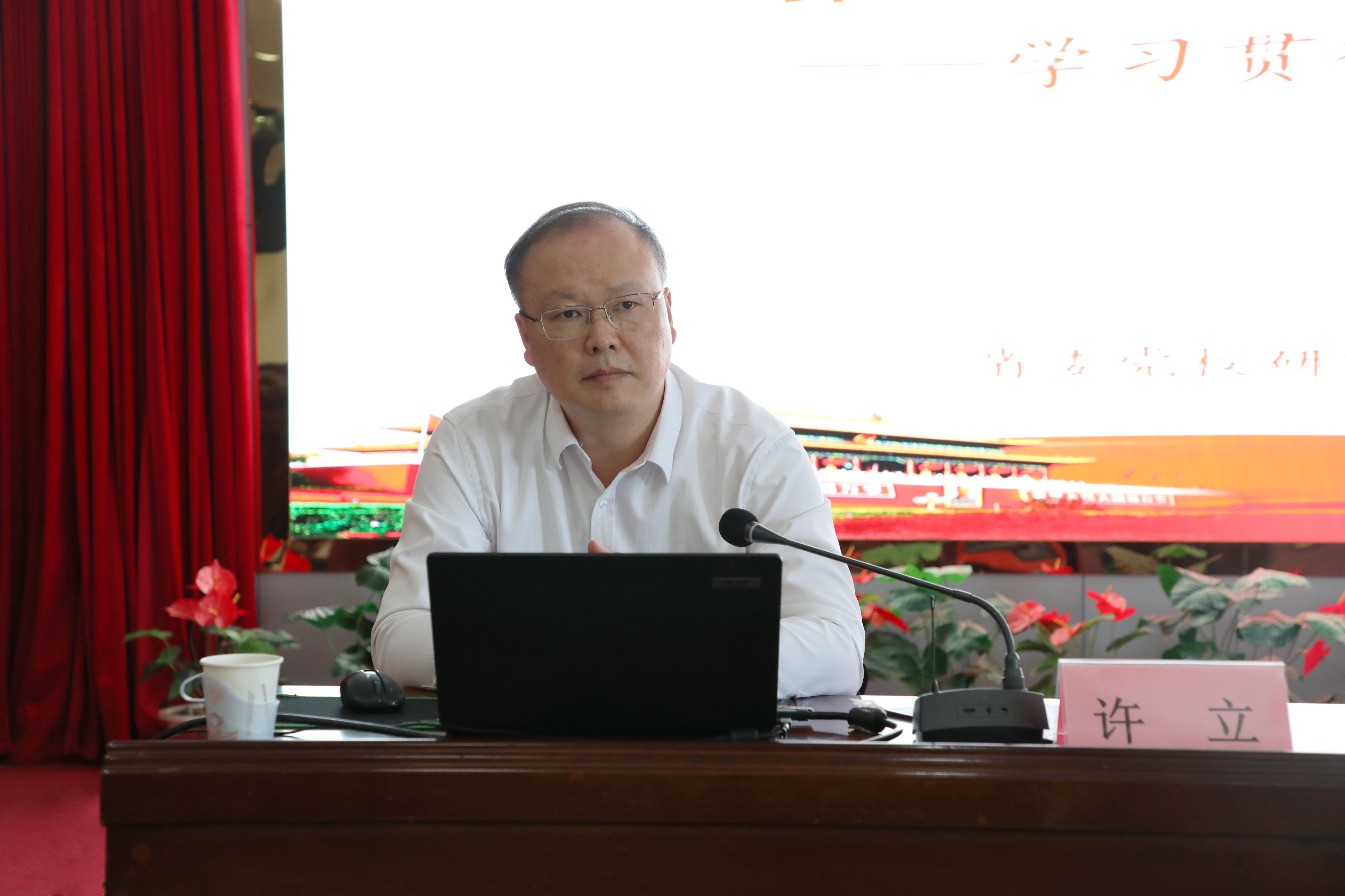 10月25日下午,学院邀请省委党校研究室主任、一级调研员,省宏观经济学会理事许立来校,作党的二十届三中全会精神专题讲座。学院党委副书记、院长杨帆主持讲座。在家院领导,中层干部、教师和学生代表参加了讲座。