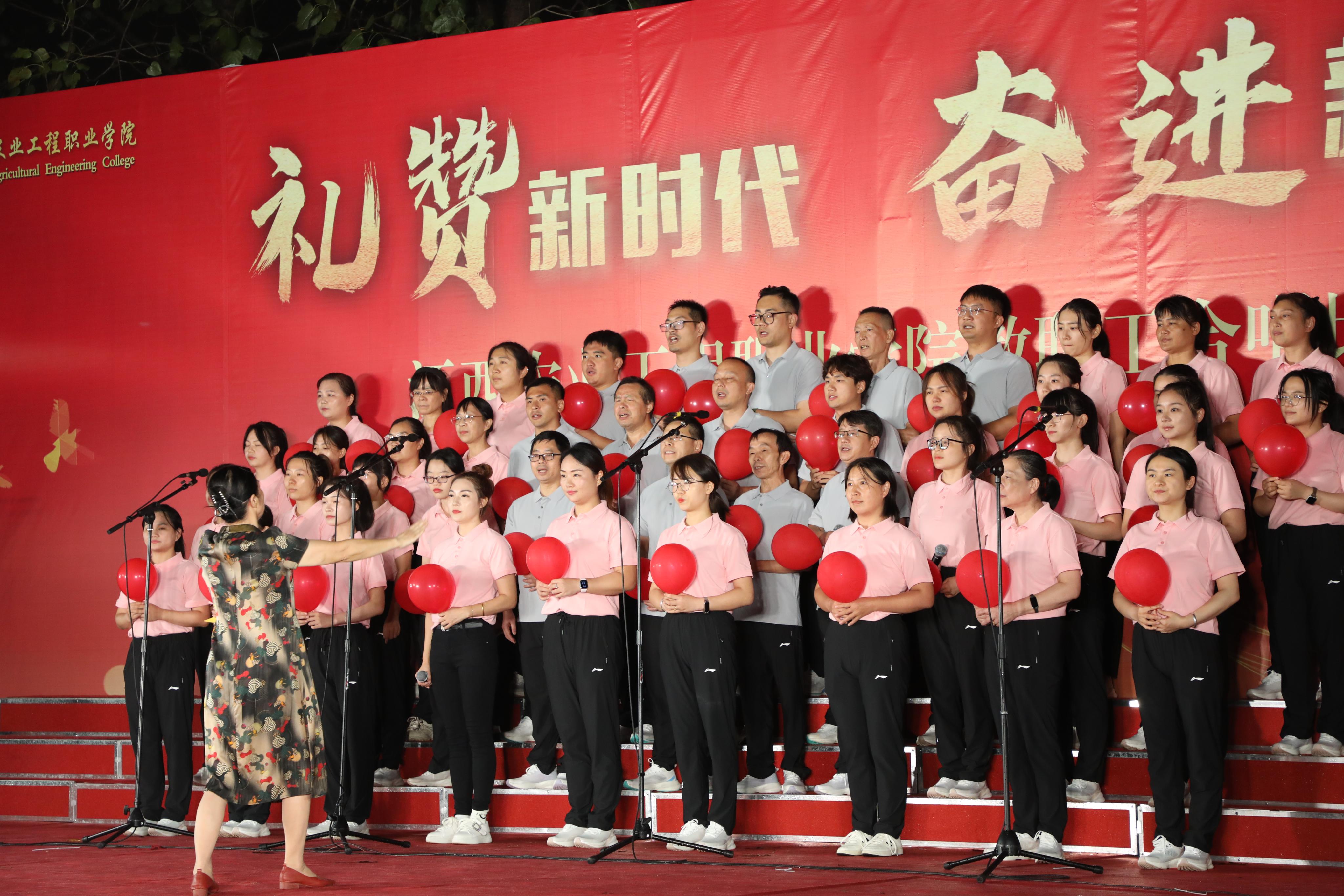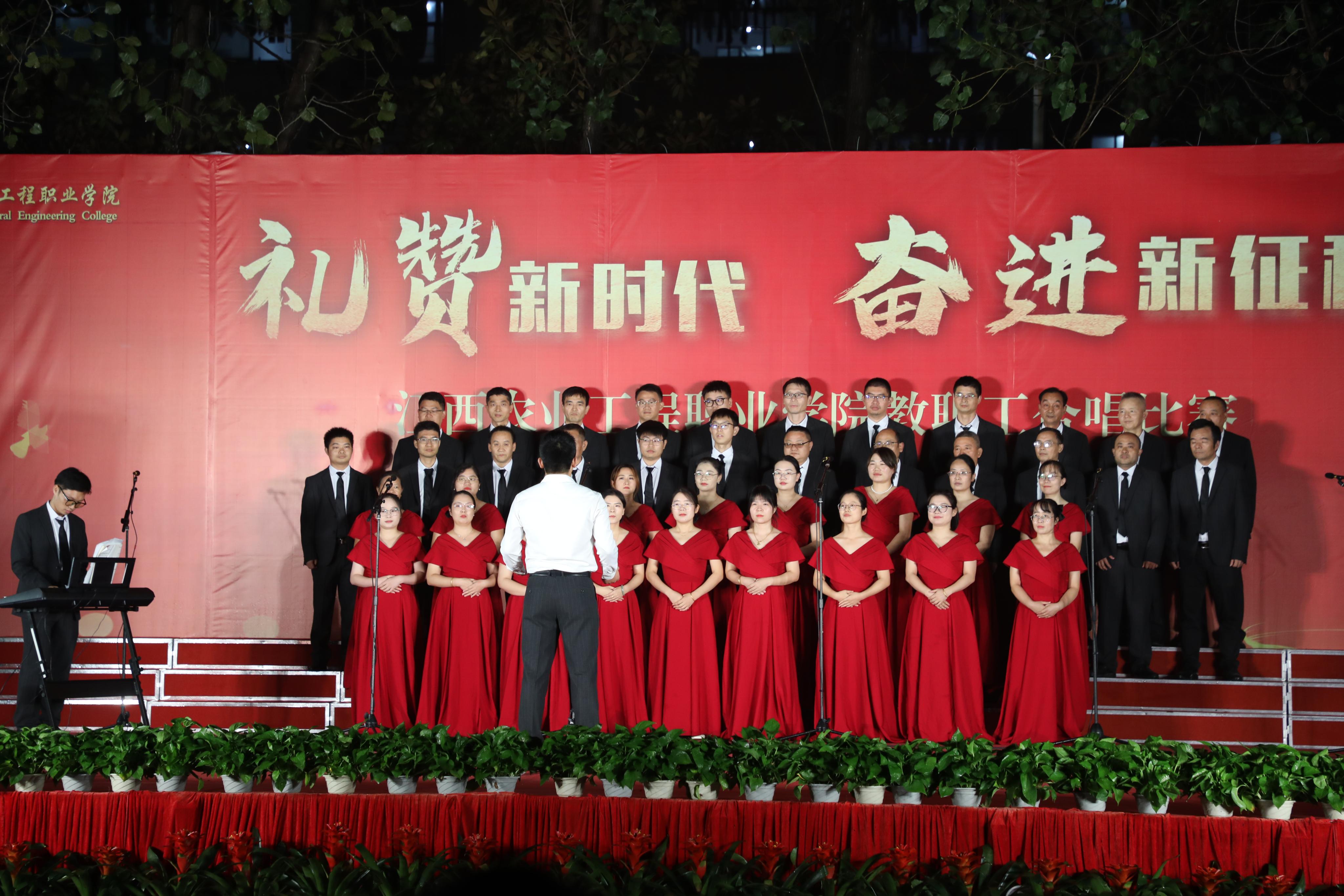 “礼赞新时代 奋进新征程”。10月15日晚,学院在田径运动场举办教职工大合唱比赛,学院领导和全体教职工参加本次比赛,共同讴歌中华人民共和国成立75周年以来的辉煌历程,共同祝福伟大祖国繁荣昌盛。