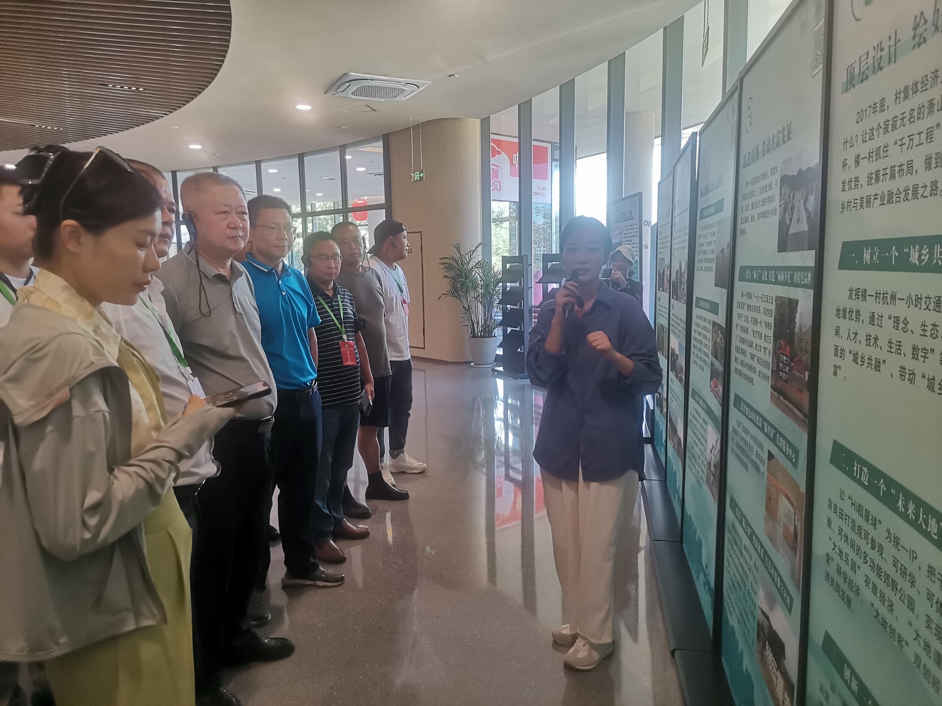 离开大同镇,学员们驱车来到杭州市余杭区永安村。在这里,纵横交错的田间道路四通八达,分割出方正整齐的田块,田里绿油油的水稻开始抽穗,沿路建有排灌沟渠,装有数据采集摄像头的电线杆矗立在田埂上,处处展示着永安村高标准农田建设和建后管护成果。在村里,整洁的草坪、绿篱,干净的道路凸显了乡村治理新风貌,文化大礼堂、文化长廊等文娱设施为乡村旅游、培训赋能。在参观学习中,学员们听取了土地规模流转、农田提标改造、搭建“稻梦空间”发展数字农业、打造“禹上稻香”项目等乡村治理和运营的经验做法,并就带动周边8个村开创“两山”转化新格局进行沟通交流。