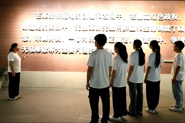 实践队共同前往苏区干部好作风陈列馆,进行参观学习,感悟苏区精神。“苏区干部好作风,自带干粮去办公......”苏区干部一心为民、清正廉洁的好作风通过这首山歌流传到今天。队员们了解了苏区干部好作风的精神内涵,更加深切感受到了苏区干部始终与人民群众艰苦与共、共同奋斗、不讲特殊的优良作风,对苏区干部有了更深的敬意。在新时代新时期,广大青年学子要揣着“初心”去行动,才能将“苏区干部好作风”发扬光大。