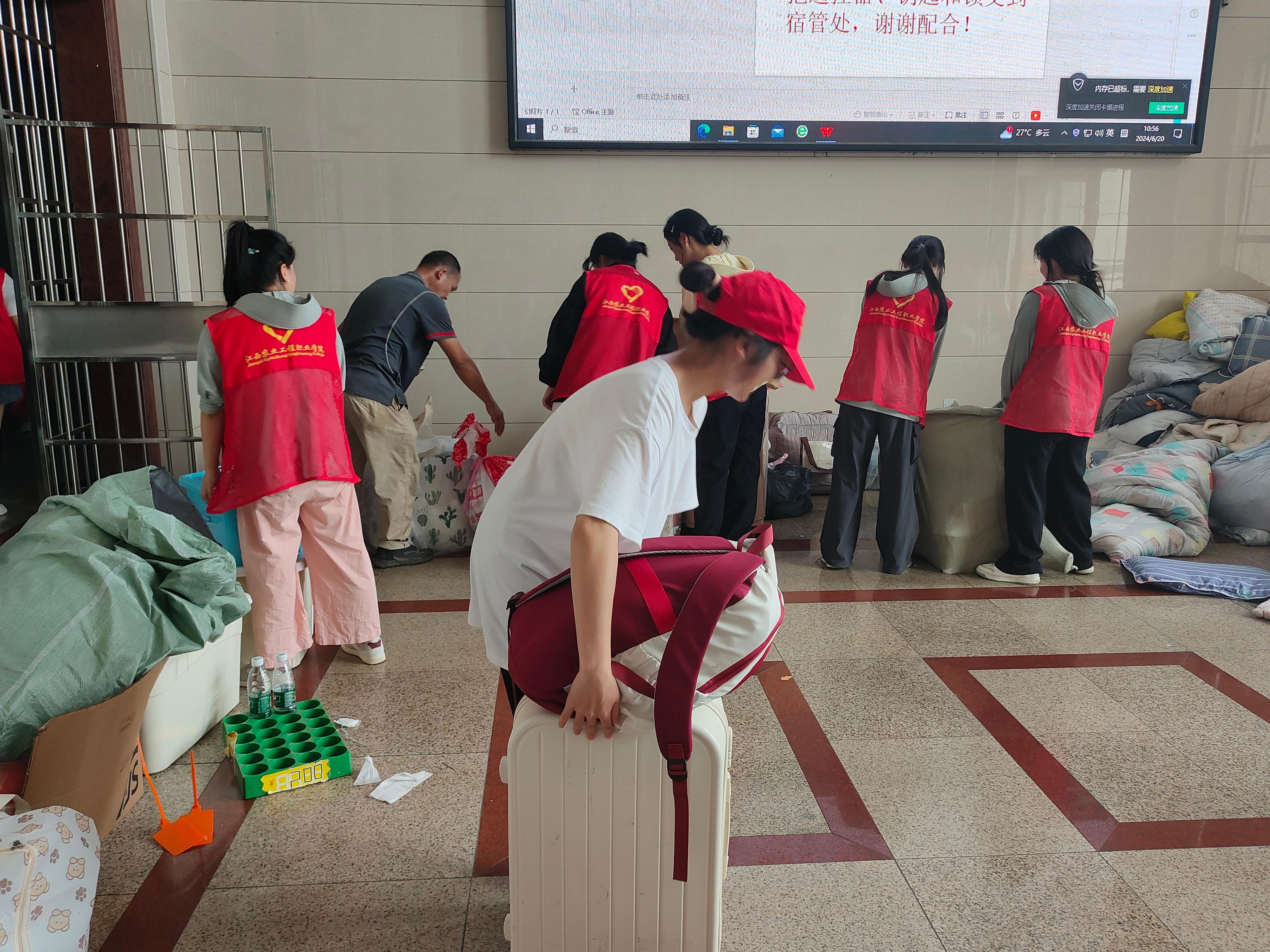 行动彰显温情,暖心护送关怀。6月19日-21日,“信服到万家”志愿队前往离校学生所在宿舍楼栋,帮助学生们将行李从宿舍楼搬运至学校大门,或将行李运送到快递站等,志愿者的身影来回穿梭构建了爱心的传送带,用汗水为离校学生提供一份温暖。信息工程学院负责人和辅导员贴心走访,深入学生宿舍看望慰问离校学生,勉励大家志存高远,坚守梦想,奋勇前行。