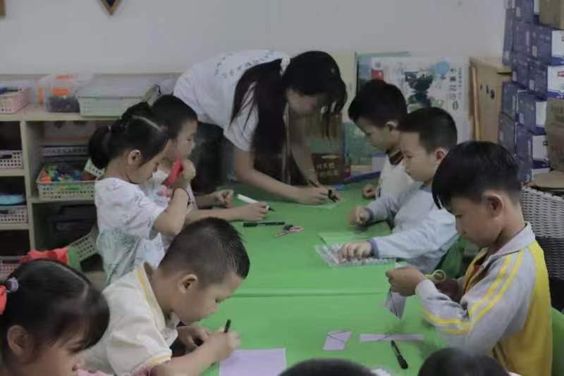 在活动现场首先开展了防溺水宣传活动,通过一问一答、有奖抢答的形式,告诫小朋友们远离危险水域,保护自身安全。随后给小朋友和家长发放了有关防溺水的宣传单。志愿者们还精心设计了“画出心中所想”“剪纸”“击鼓传花”等游戏互动环节,培养小朋友们的想象力和动手能力。孩子们在轻松愉悦的氛围里画出自己心中所想画面,做出自己心仪的手工作品,在游戏中感受快乐、学习知识。活动最后,志愿者们将精心准备的礼物送给小朋友们,小朋友也将自己作品回赠。