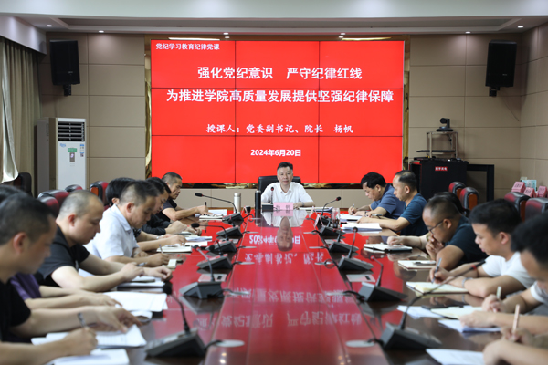 6月20日,学院党委副书记、院长杨帆在惟公楼409会议室,以“强化党纪意识 严守纪律红线 为推进学院高质量发展提供坚强纪律保障”为主题讲授纪律党课。在家的院领导及各处室(院、部)党政负责人参加了党课学习。