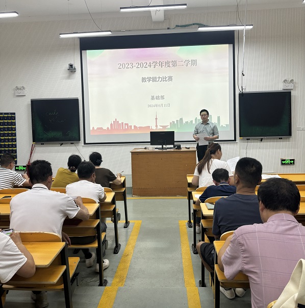 为进一步提升基础部全体教师教学能力和水平,促进教师专业发展,努力锻造一支师德高尚、理念先进、教学设计优、教学效果好、教学能力强的专业教师队伍,2024年6月11日晚,基础部在第三多媒体成功举办了教师教学能力比赛,部门全体专兼职教师参加此次活动。
