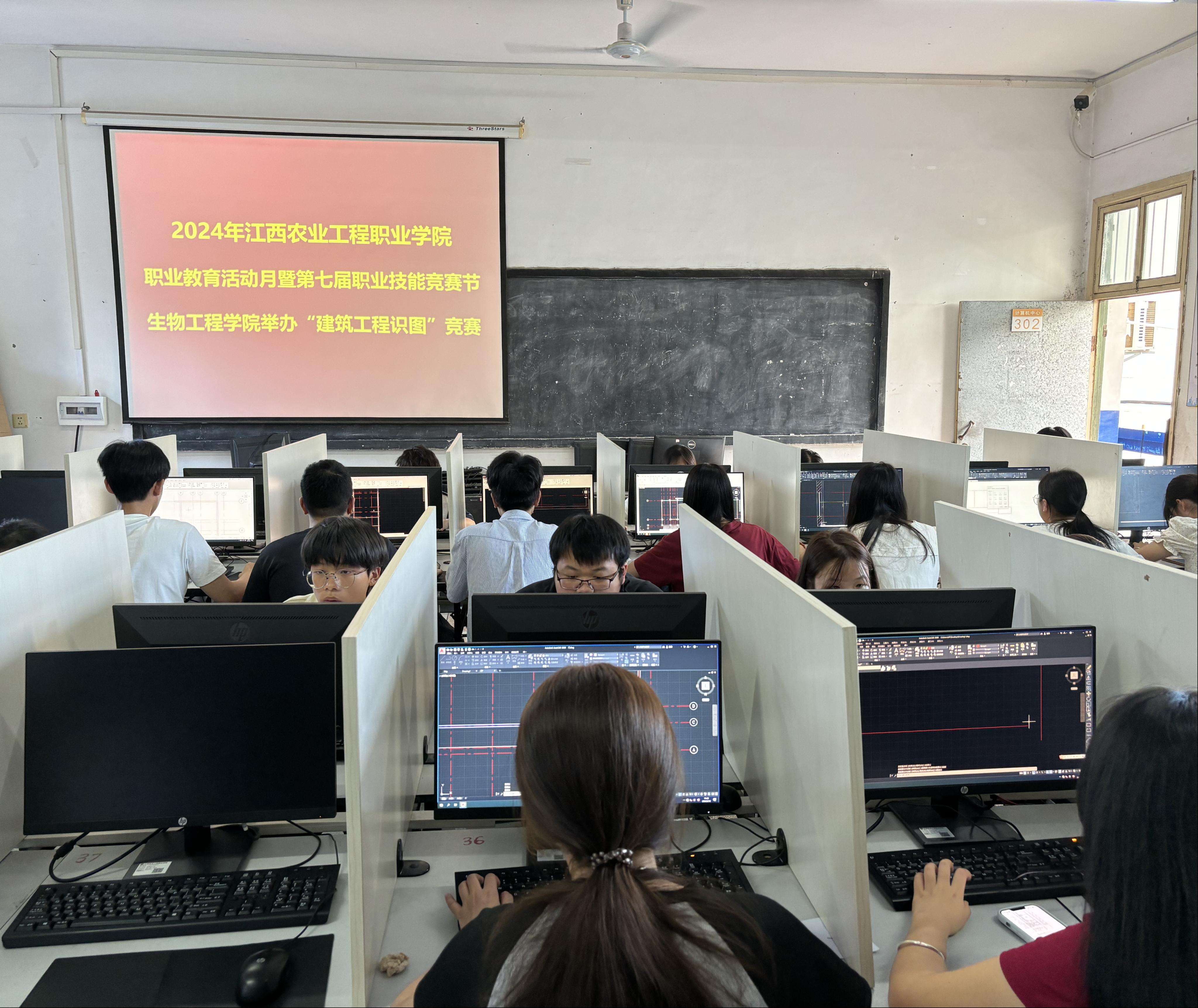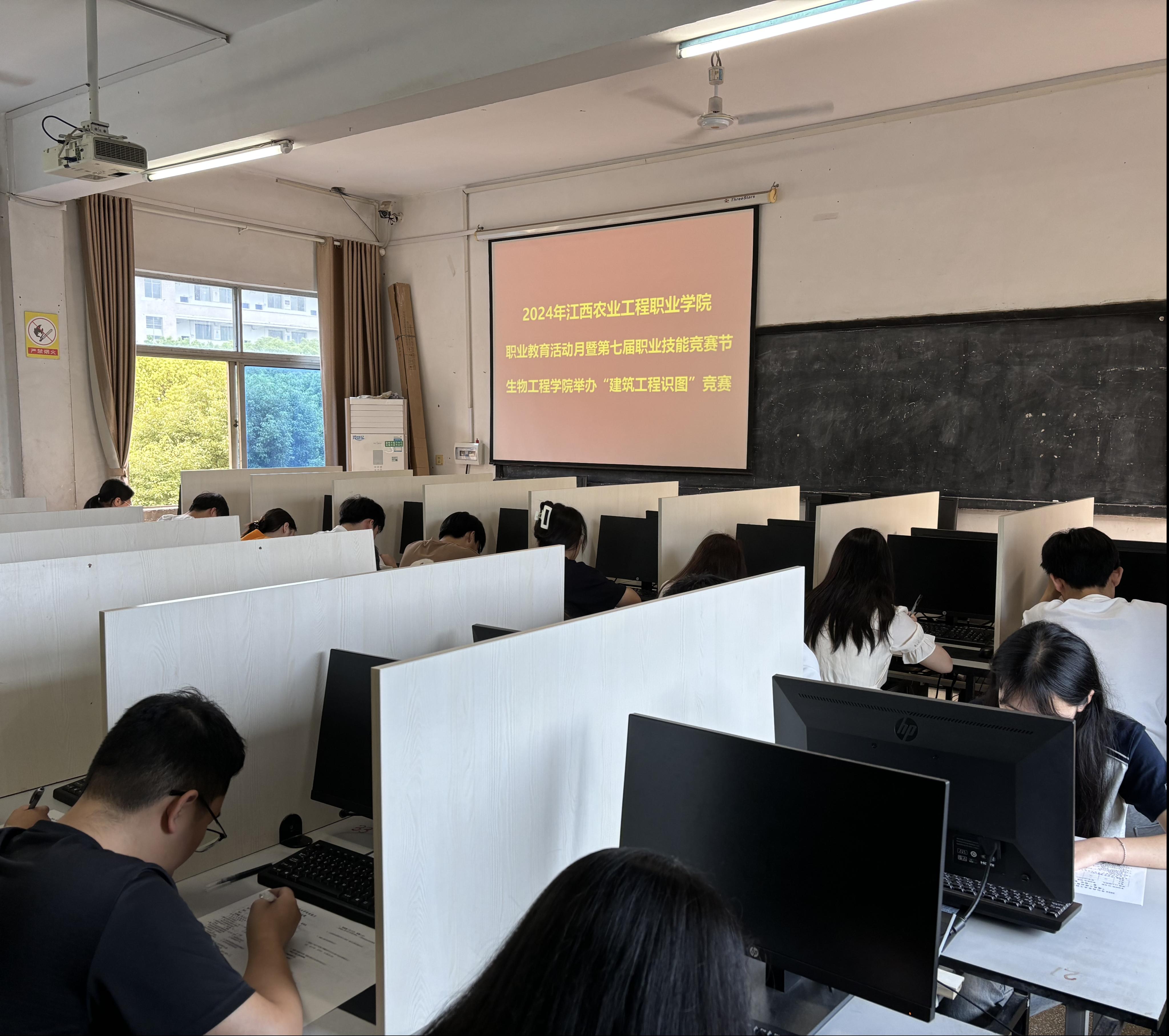 依据《2024年江西农业工程职业学院职业教育活动月暨第七届职业技能竞赛节活动实施方案》的有关要求和对职业院校人才培养的有关精神,2024年5月12日上午,生物工程学院在第五机房举行了今年技能月“建筑工程识图”竞赛,本届比赛共有来自23级建筑工程技术及工程造价专业的30名学生参赛。
