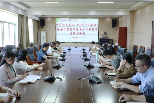 为贯彻落实省委教育工委《关于举办全省教育系统“学党史知识 庆七十五华诞”暨第九届党的基本知识竞答赛的通知》精神,进一步推动党史学习教育走深走实,引导广大青年学子和教师感党恩,听党话,跟党走,奋力谱写中国式现代化江西篇章,5月14日,学院组织召开“学党史知识 庆七十五华诞”暨第九届党的基本知识竞答赛动员培训会,学院党委副书记章小朋主持会议,院属各党支部书记及支委参加会议。