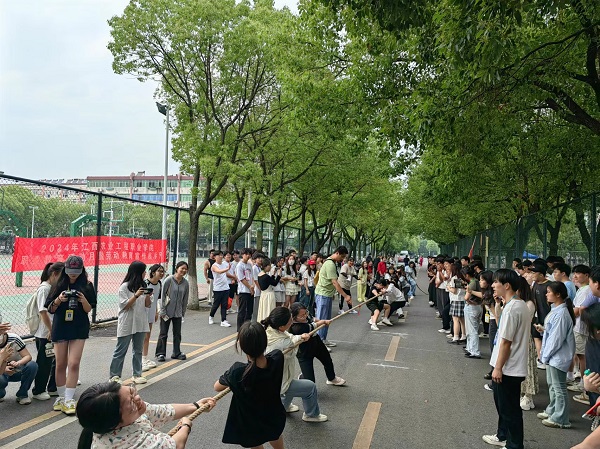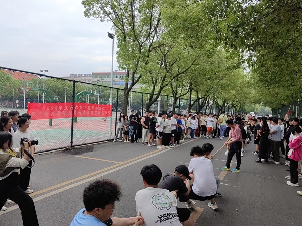 七个分院各派了出两只队伍,每队分别十位男生和十位女生参加拔河比赛。比赛采取单败淘汰制,按抽签顺序进行,三个获胜方和轮空队进行半决赛,胜者进入决赛争夺一二名,败者争夺第三名。在活动过程中,各分院参赛队员努力拼搏、奋勇争先,场上呐喊声、加油声此起彼伏,整个场面即激烈又温馨。