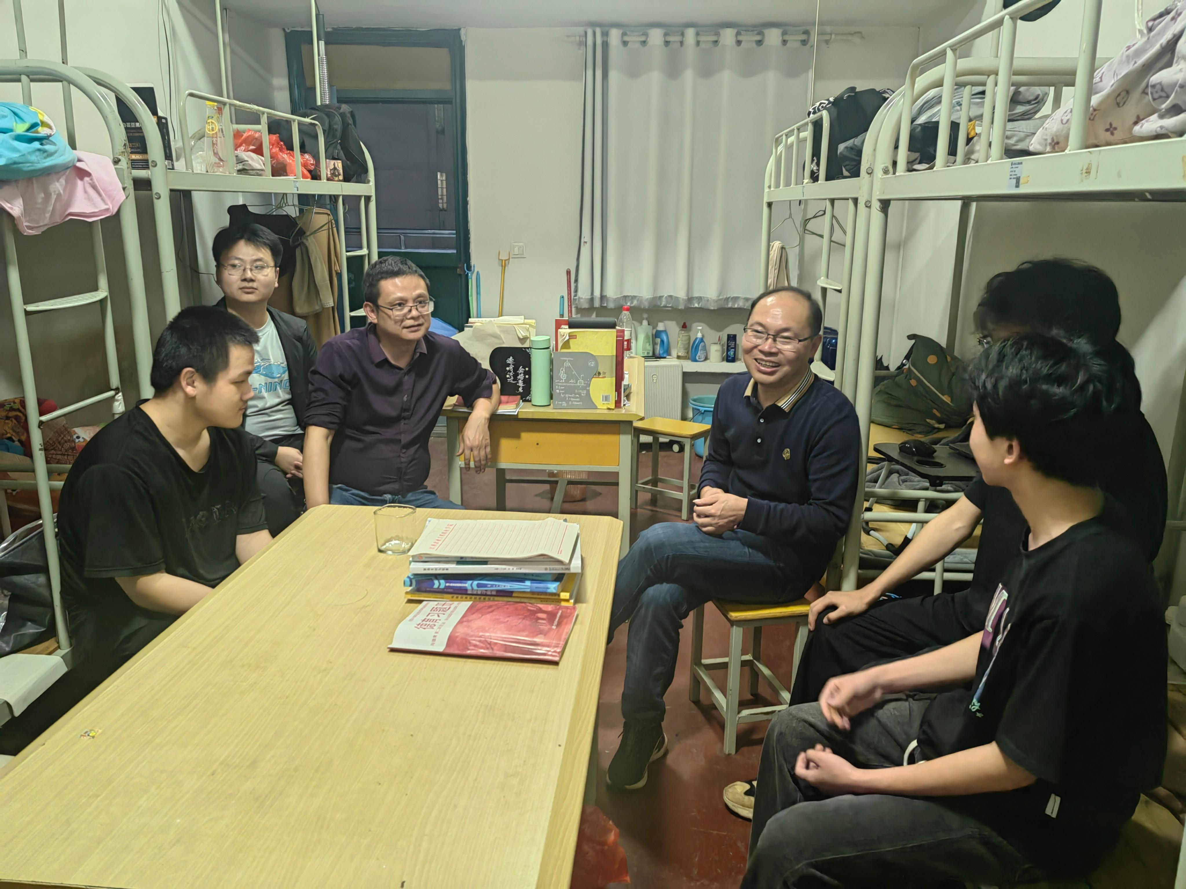 晚上,吕湘江深入学生宿舍进行温情走访,与学生面对面互动、心贴心交谈。声声问候传深情,殷殷关怀暖人心,他深入了解学生学习、生活等情况,并询问学生在学习、生活中遇到的问题,实时为同学们答疑解惑、解决困难。