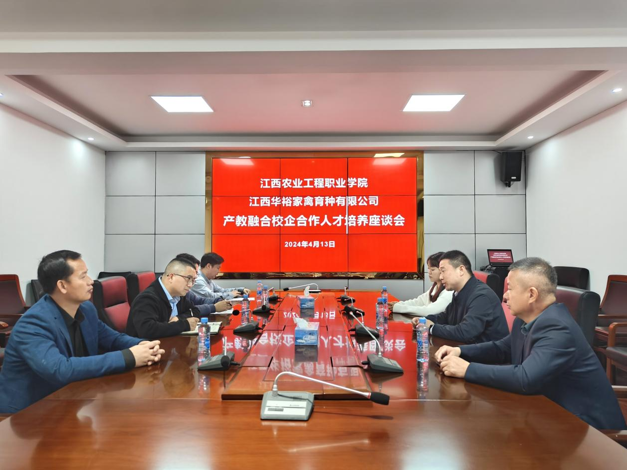 为进一步深化学院产教融合,促进教育链、人才链与产业链、创新链有机衔接,探讨产教融合发展新内涵、新趋势、新举措,4月11日至13日,动物科学学院邀请了双胞胎(集团)股份有限公司、吉安县温氏畜牧有限公司、江西华裕家禽育种有限公司召开了“产教融合、协同共育”卓越畜牧兽医人才培养座谈会。学院副院长许振华、动物科学学院相关老师参加了座谈会。