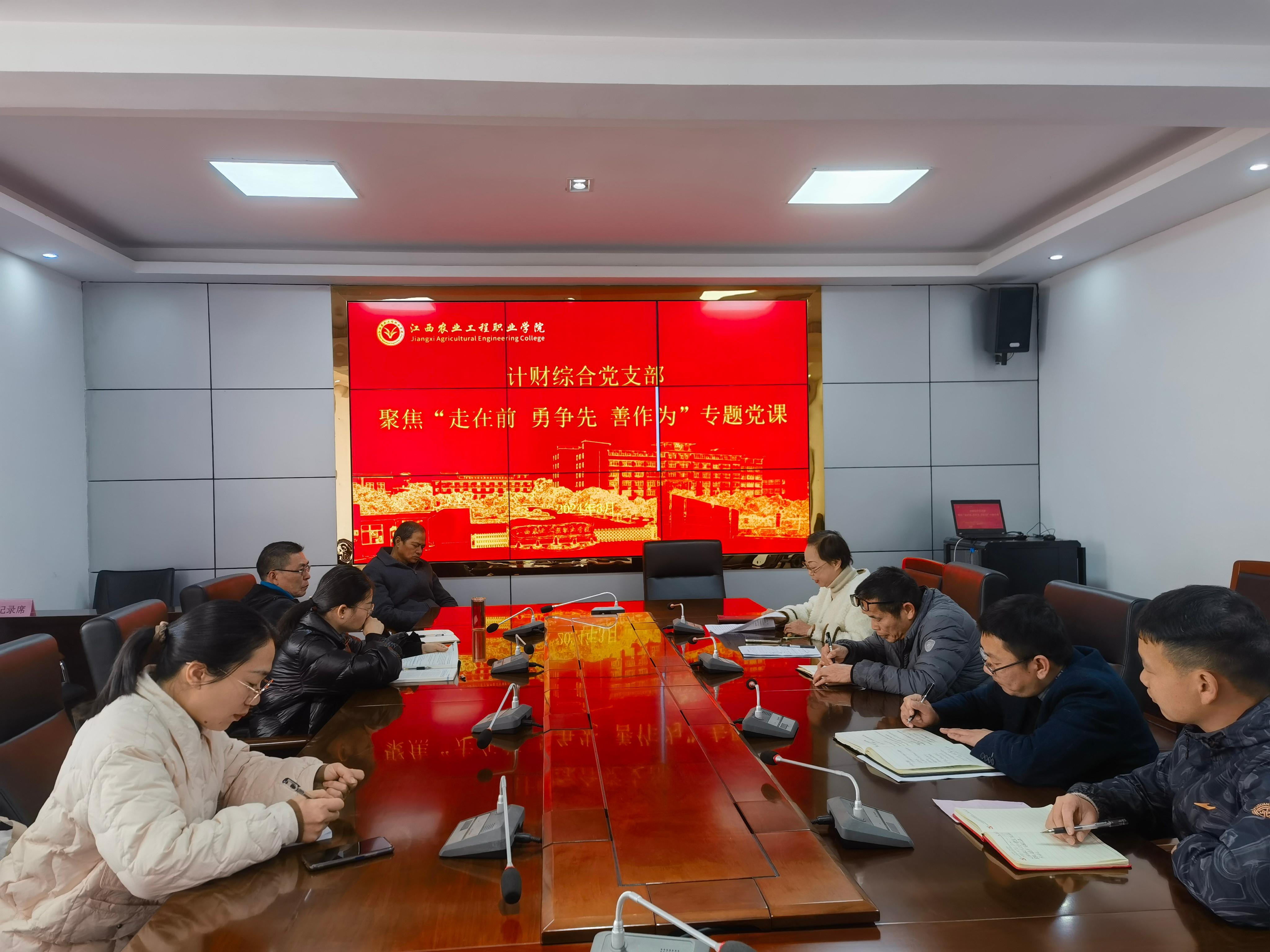 3月19日上午,在学院惟公楼412会议室计财综合党支部开展“走在前、勇争先、善作为”专题党课活动,支部全体党员参加。