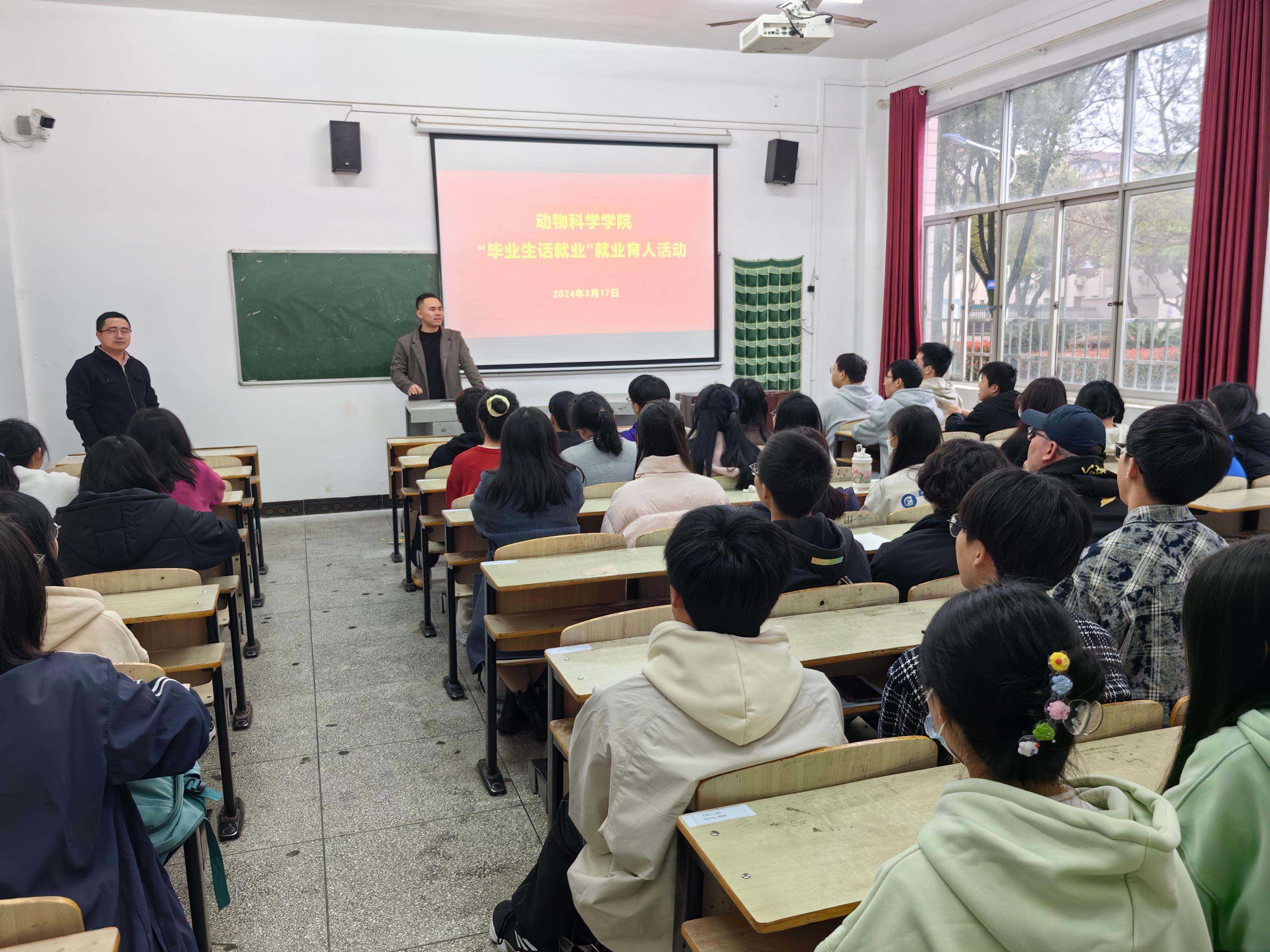 为进一步强化“就业育人”实效,加强就业指导服务,引导毕业生树立积极就业心态,3月17日,动物科学学院开展以“毕业生话就业”为核心的就业育人主题教育活动。动物科学学院2014级畜牧定向毕业生蒋鑫泉进行宣讲,分院全体定向生参加。