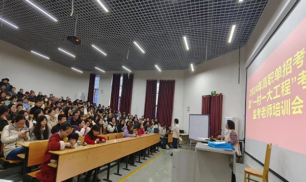 3月15日下午,学院2024年高职单招考试及“一村一大工程”考试监考老师培训会在第一多媒体教室召开,学院副院长周维出席会议并讲话,全体监考人员、巡考人员、考务工作人员参会。