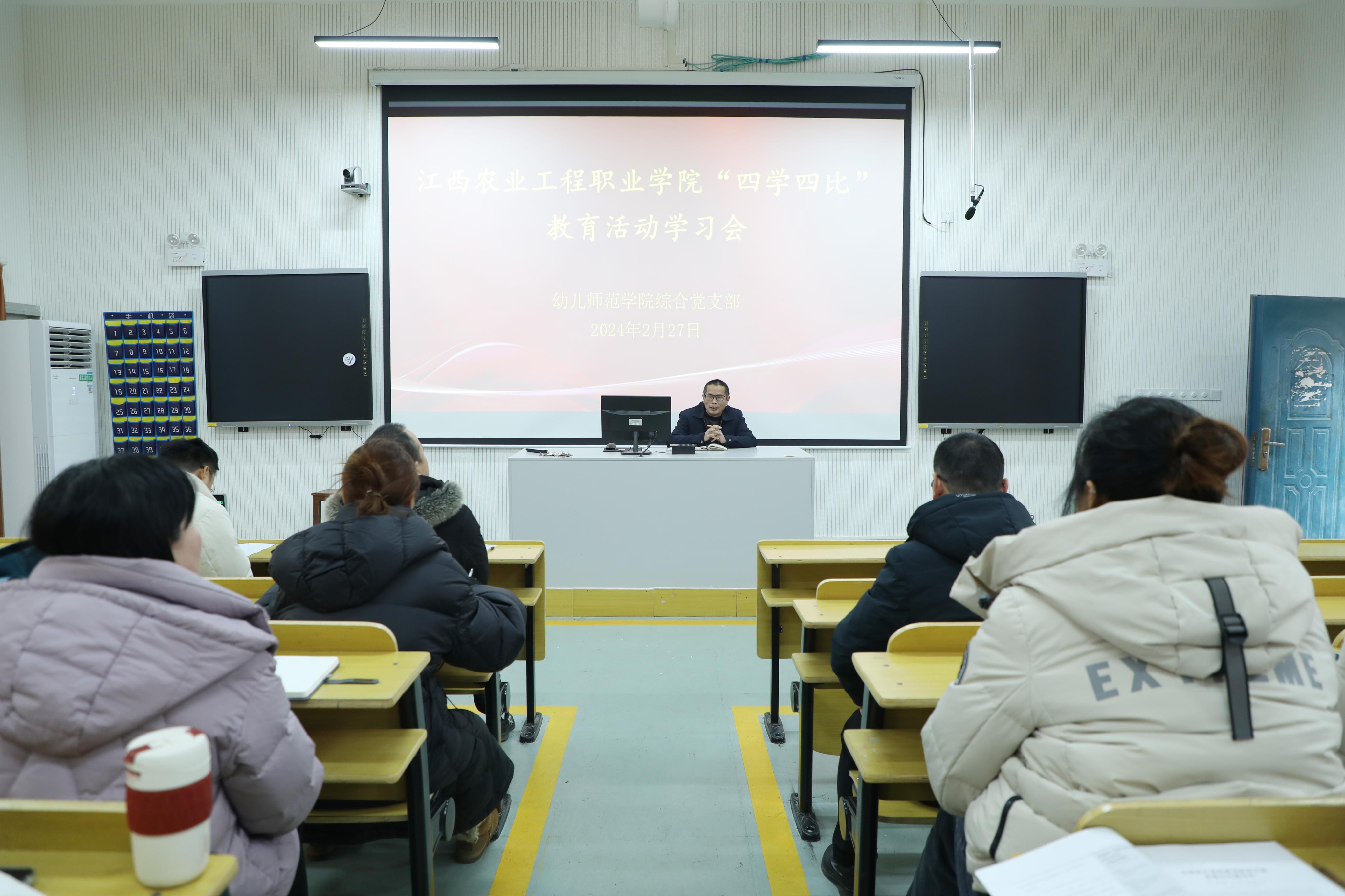 最后,督导领导周维对学院开展“四学四比”教育活动的重要意义进行了讲解,并提出了三点要求:一是要加强政治理论学习,坚定理想信念,弘扬教育家精神,做学生为学、为事、为人的示范、做好学生成长成才引路人;二是要学以致用,通过专题教育活动找差距,补短板,提升业务和教育教学能力,投入到新的一年工作中;三是要强化师德师风和纪律规矩意识,恪守师德规范,严守廉洁底线。为学校推进高质量发展贡献自己的一份力量。