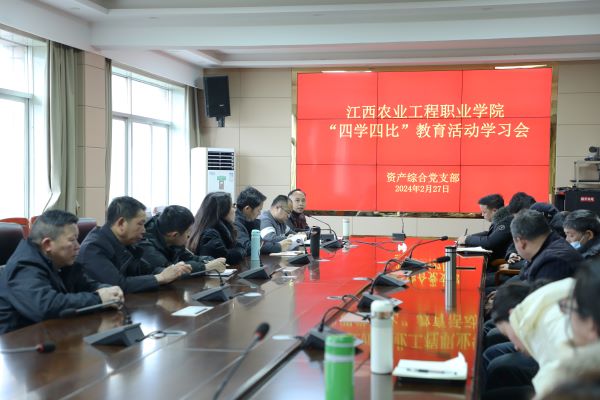 为积极贯彻《江西农业工程职业学院开展“四学四比”教育活动实施方案》总要求,2月27日上午,资产综合党支部按照“四学四比”主要任务,组织资产管理处、后勤保障处、规划基建处全体教职工开展集中学习,学院党委委员、副院长许振华到会督导并讲话。会上,支部负责人领学了“二十大”报告节选、习近平在江西考察时的重要讲话、《中共中央国务院关于学习运用“千村示范、万村整治”工程经验有力有效推进乡村全面振兴的意见》、《学校消防安全管理规范》等学习内容。