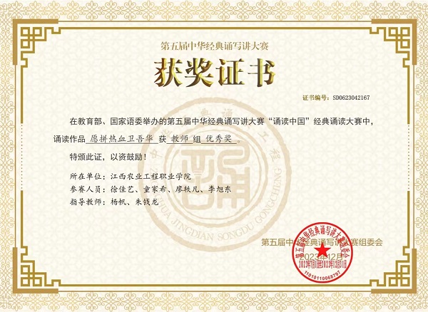 通过此次大赛,学院师生的语言文字应用能力和语言文化素养得到进一步提升。今后,学院将始终坚持传承中华优秀传统文化,将文化育人贯穿教育教学全过程,营造师生亲近中华经典、热爱中华经典的良好氛围。