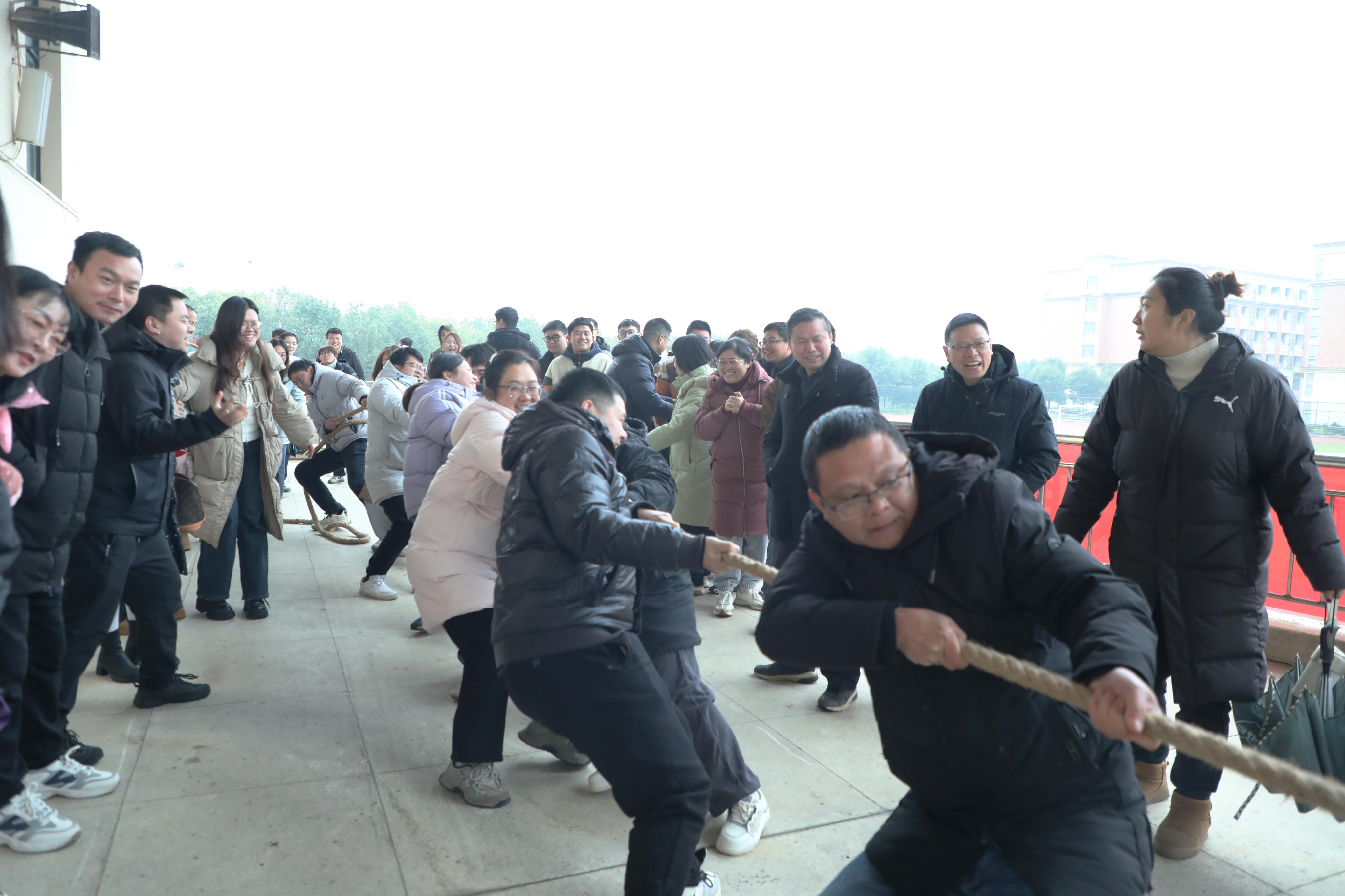 为进一步丰富校园文化生活,发扬各基层工会的团队精神,增强全体教师的集体荣誉感与凝聚力,让大家在繁忙的工作之余得到乐趣与放松,学院于2024年2月26日举行了“迎新春”教职工拔河比赛。