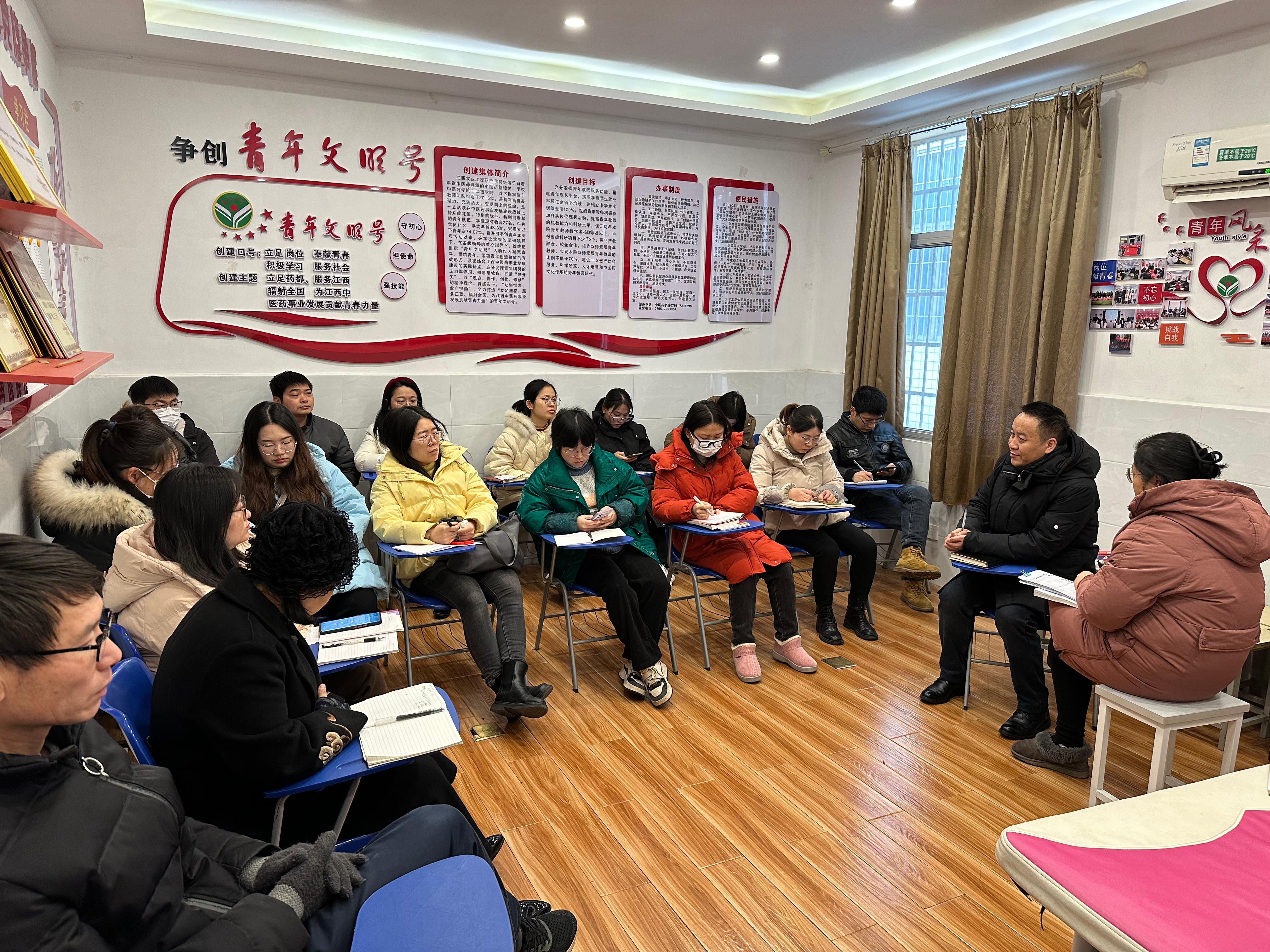 为更好提升工作能力和教育教学水平,为学院改革和高质量发展实干担当、贡献力量,中医药学院全体教师于2月27日在养生馆101会议室开展“四比四学”教育活动,学院副院长陈金和到会督导。