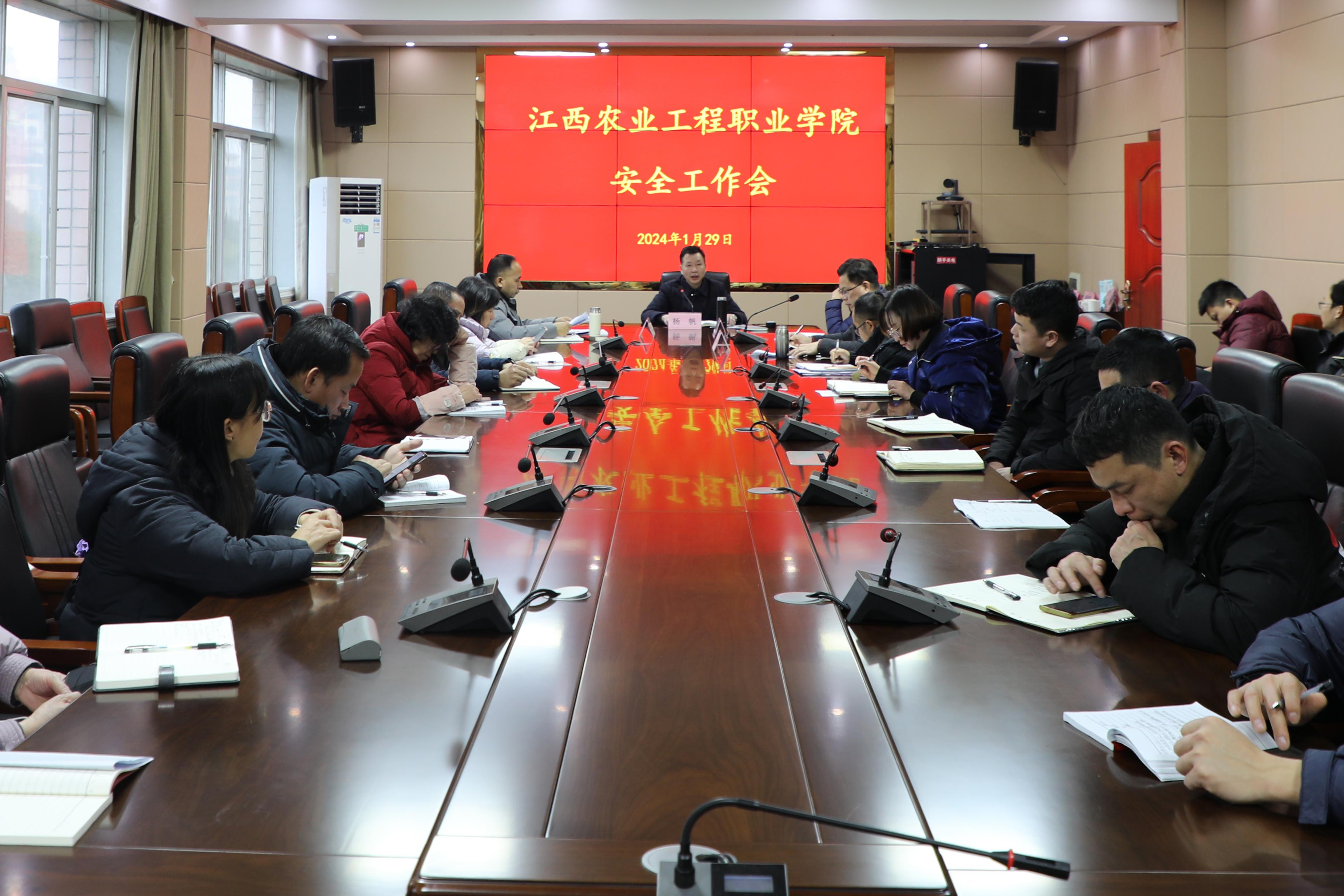 1月29日,学院召开安全生产工作会议,传达学习习近平总书记等中央领导同志对江西新余市火灾事故作出的重要指示精神,省委书记尹弘的讲话精神,省农业农村厅以及省教育厅会议精神。党委副书记、院长杨帆主持会议并讲话,副院长周维、许振华、陈金和等在家学院领导参加会议。