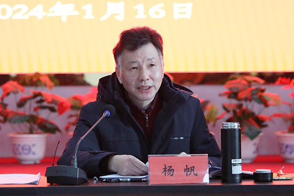 在听取了各部门及党支部负责人的汇报后,杨帆一一给予了点评,在听取了各位院领导的发言后,他全面回顾了学院2023年工作,剖析了学院发展遇到的困难,结合学院发展形势提出了2024年工作打算,做了工作部署。他强调,2024年,要以习近平新时代中国特色社会主义思想为指导,以问题为导向,紧紧围绕“凝心铸魂、提质强基”主题,扬优势补短板,推动学院各项事业迈上新台阶。一是凝心聚力,加强师生理论武装。开展好党委中心组(扩大)学习,及时跟进学习习近平总书记最新重要讲话精神,落实党员干部职工政治理论学习制度,二是强根铸魂,加强师生思政工作。选树践行社会主义核心价值观典型人物,广泛宣传践行社会主义核心价值观工作案例,探索创建“青年马克思主义者论坛”,打造“大思政课”特色品牌。三是提质培优,加强专业内涵建设。突出农业优势和特色,紧紧围绕现代农业技术、中草药栽培与加工、畜牧兽医、现代农机装备四个特色专业,打造学院核心专业群,提升专业内涵建设水平和质量。四是固本强基,加强硬件设施建设,改善学院办学条件。