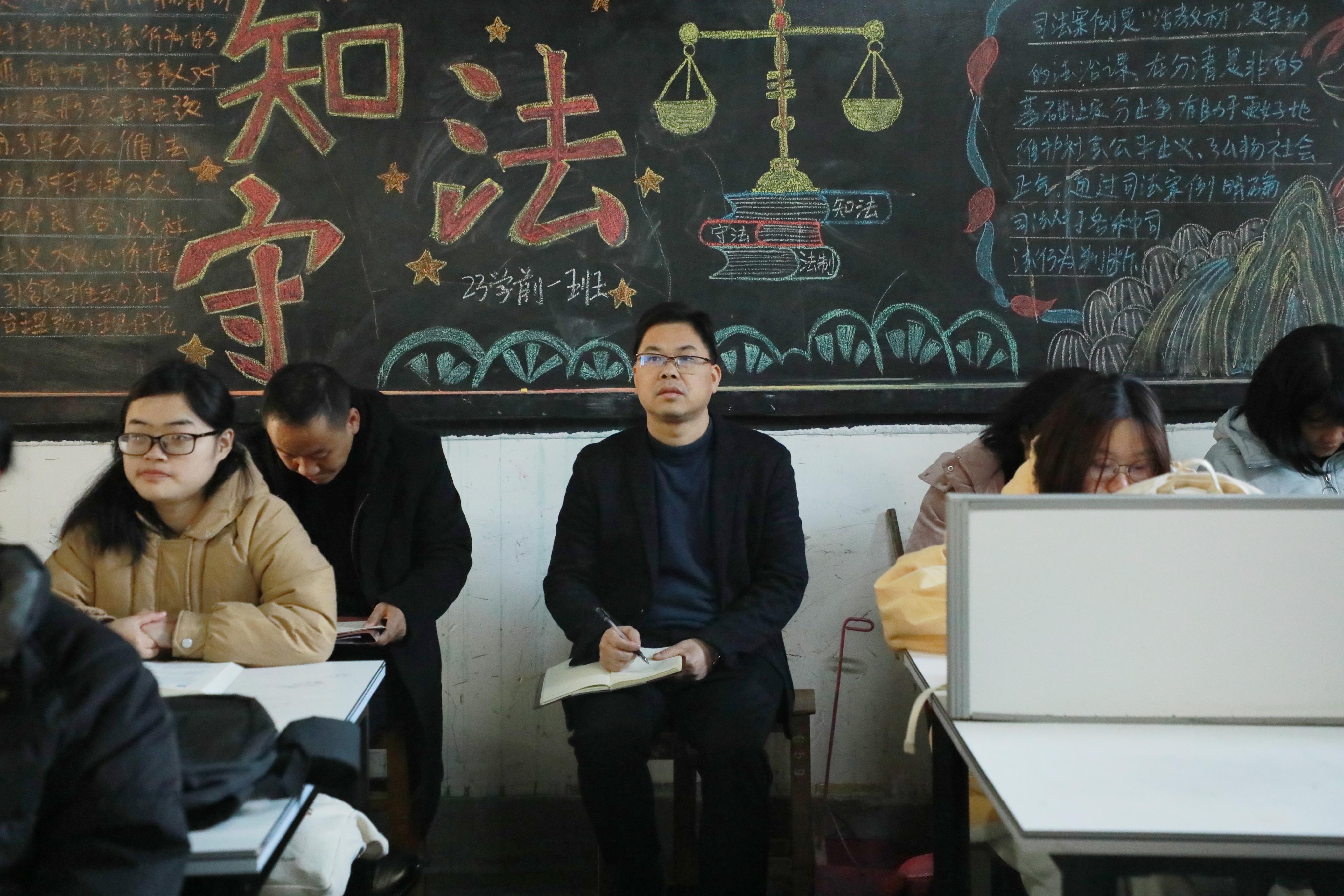 当天上午,陈金和与23中资1班的同学们一同听了一堂生动的专业思政课。他坐在同学们中间,认真听讲、积极参与课堂讨论,深入了解同学们的学习状况和困惑。课后鼓励同学们遇到问题要积极思考,要努力钻研学问,更要勇于创新开拓思维。