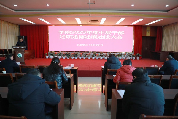 12月22日下午,学院在多功能报告厅召开2023年中层干部年度述职述德述廉述法考核大会。学院党委副书记、院长杨帆及在家院领导出席会议,学院党委副书记章小朋主持会议,全体中层干部、教师代表代表参会。
