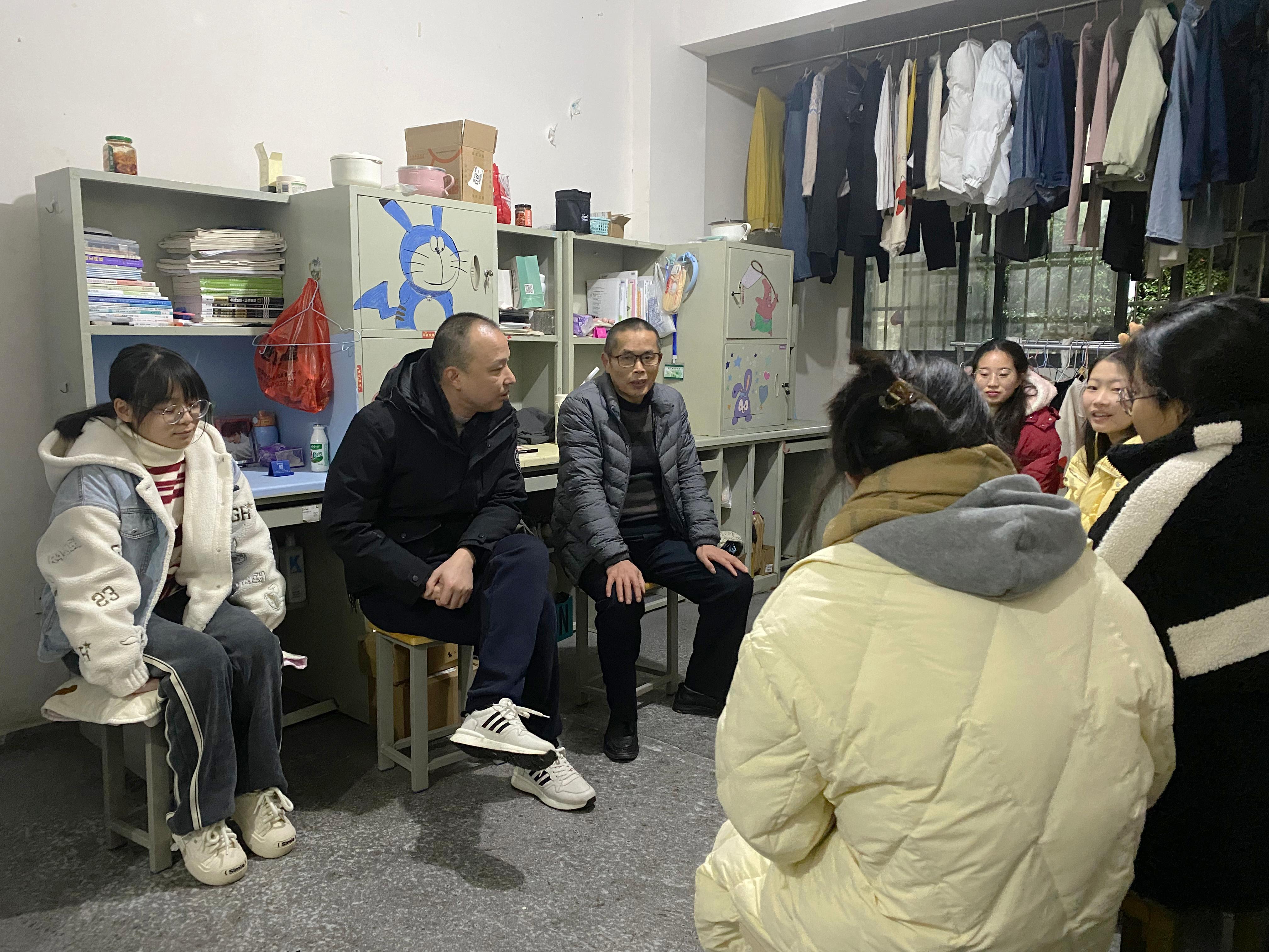 晚上8时,周维走进宿舍和同学拉家常,认真了解同学的学习、生活、思想等情况。周维特别叮嘱同学们大学生涯要全面提升综合素质,把学习摆在首位的同时,积极参加各种活动,注重良好习惯养成,为今后成为社会有用之才打下坚实基础。