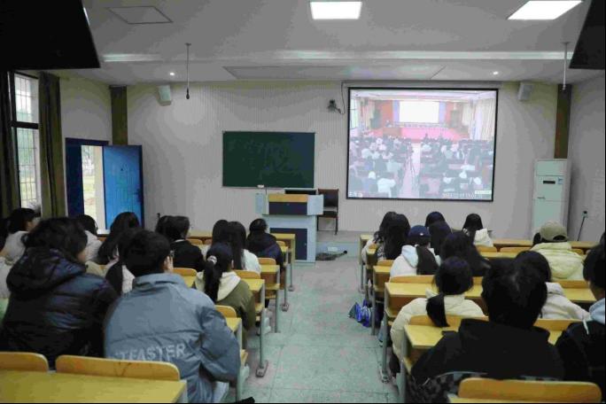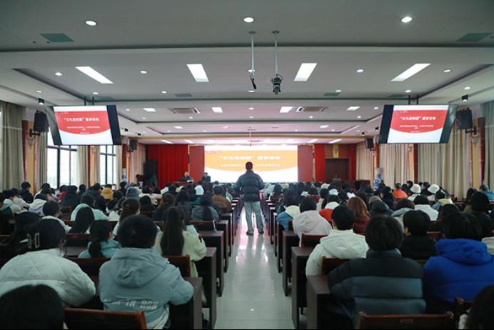 讲座在多功能报告厅举行,培训教室一、二同步收看。在家院领导、各部门教师代表、各分院学生代表等400余人聆听了讲座。