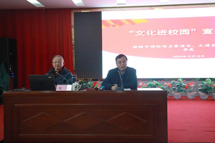 12月15日,学院举行“文化进校园”主题讲座,邀请樟树市博物馆名誉馆长李昆老师进校园讲授关于樟树的历史文化课。学院党委副书记章小朋主持讲座。