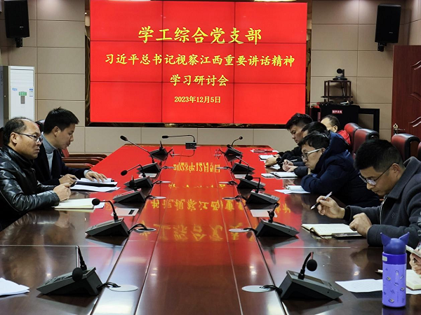 为深入学习领会习近平总书记考察江西重要讲话精神,传承红色基因用红色文化铸魂育人,12月5日,学工综合党支部召开习近平总书记视察江西重要讲话精神学习研讨会。学院副院长吕湘江以普通党员身份参会,支部书记主持会议,机电工程学院党支部书记列席旁听。