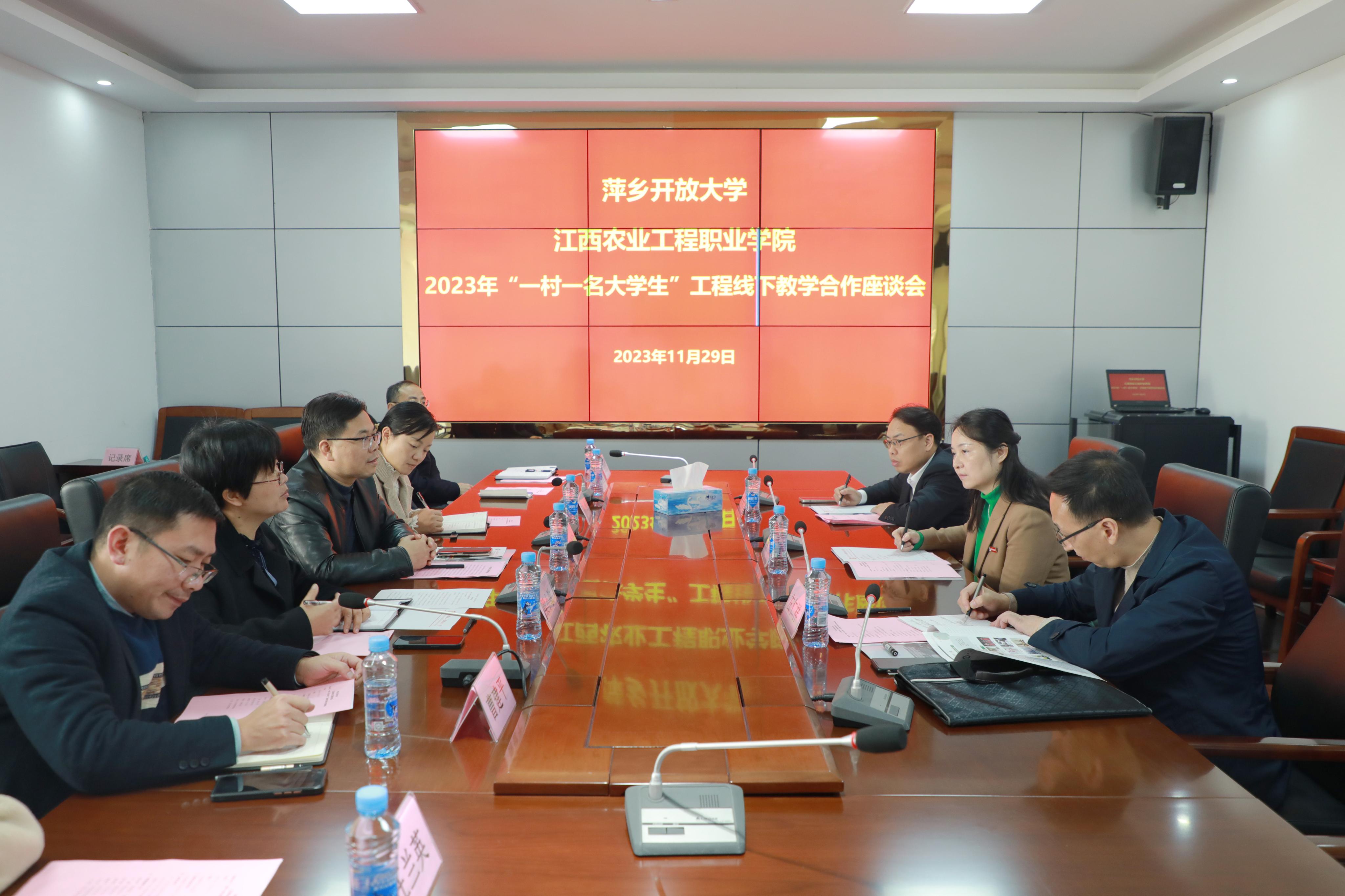 11月29日上午,萍乡开放大学校长肖洁、副校长左仁祥等一行4人到我校交流洽谈2023年“一村一名大学生工程”合作事宜。学院副院长陈金和、招生办、教务处等相关部门负责同志参与座谈交流。