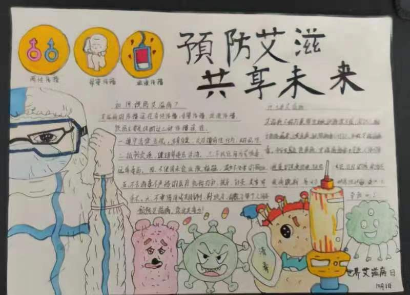 比赛过程中,同学们积极参与,纷纷呈现出自己的创意和才智,将一张张白纸变成了色彩斑斓的手抄报。他们用生动的图画、有趣的文字和案例,向大家介绍了艾滋病的传播途径、症状、预防措施以及关爱艾滋病感染者的重要性。同时,他们也强调了正确对待艾滋病的态度,倡导全社会共同关注、关心和支持艾滋病防治工作。