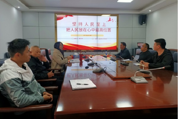 11月24日,学院资产综合党支部书记在412会议室给支部党员同志上党课,主题是“坚持人民至上,把人民放在心中最高位置”。