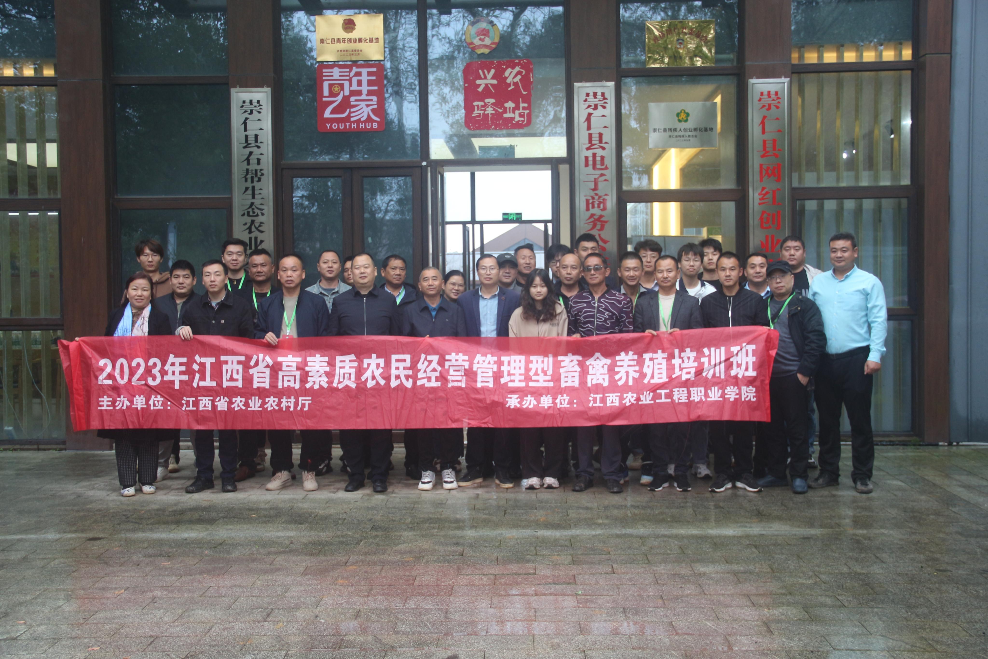 为开展好高素质农民培训,加强养殖技术交流,11月11日,学院组织2023年畜禽养殖技术培训班学员赴崇仁县右帮生态农业发展有限公司麻鸡养殖基地及崇仁县麻鸡博物馆开展现场教学。