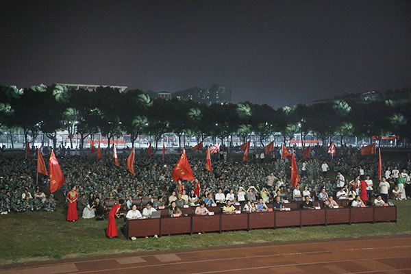为丰富学生军训生活,增强学生集体荣誉感和爱国主义情怀,9月26日晚,军歌大赛在田径运动场正式举行。在家校领导和各部门负责人出席了本次活动。