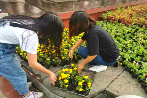 为了创造优美雅致、健康绿色的校园环境,营造浓厚的校园文化氛围,6月2日,20级中药学2班全体同学在老师的带领下,对学校大门和校园内的花坛进行了整理工作。同学们分工协作,男生有的推车,有的扛着锄头,一同前往行政楼的花坛处进行锄草工作。女生全部来到学校大门前,一部分负责给学校门前的花坛除草,其余同学将小货车中的小花盆移至大门前的空地,规范、美观地摆放。经过一个多小时的整理和摆放,原本参差不齐的绿植变得整齐美观,校门口愈发“靓”了起来。