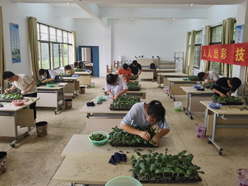 在比赛现场,每一个比赛工位上都准备好了嫁接所用物品,各参赛学生有条不紊,争分夺秒地进行黄瓜(接穗)与黑籽南瓜(砧木)的插接。通过嫁接技能竞赛,同学们在训练中打磨自己嫁接技术水平,在实践中加强了对知识的理解,体现了坚持与奋进的精神风貌,增强了对技能就业的信心。