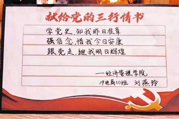 5月1日至5月6日,经济管理学院开展“献给党的三行情书”主题作品征集活动。