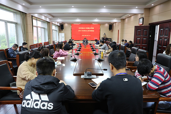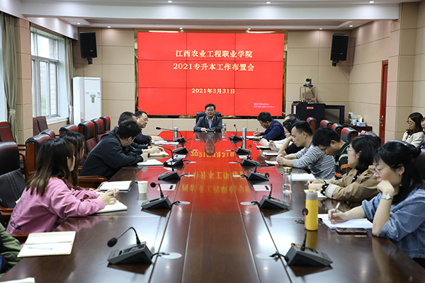 为贯彻落实省教育厅《江西省2021年普通高校专升本考试招生实施方案》《江西省高等职业院校与本科高校联合培养本科层次技术技能型人才实施方案》文件精神,切实做好我院2021年专升本考试宣传工作。3月31日下午,在行政楼409会议室组织召开专升本工作布置会。院党委书记张新春出席会议并讲话,副院长龚福保、就业办负责人、各二级学院书记、干事、全体18级班主任参加本次会议,会议由就业办负责同志主持。