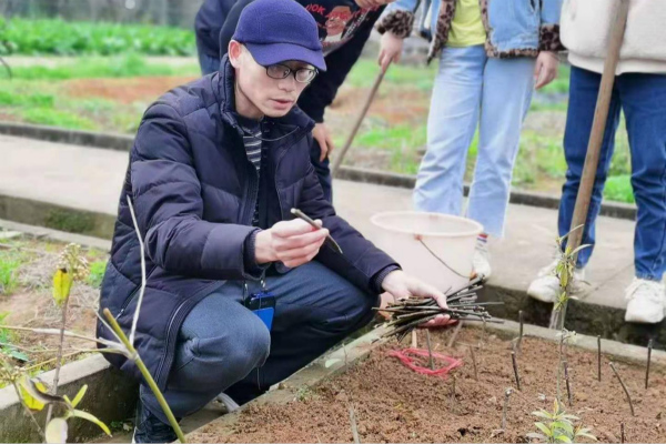 老师从栽培地选择、规划、整理、消毒,插穗的采集与处理,扦插及插后管理等方面详细介绍,带领同学们一同完成了种植任务。