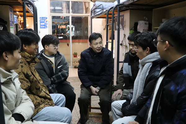 21点,杨帆走进生物工程学院学生宿舍,仔细察看了寝室设施设备情况,坐下来与同学们亲切交谈,关心同学们的家庭情况,详细了解同学们学习情况,就寝室卫生、安全管理等问题与同学们亲切交流,听取了大家对学校宿舍管理工作的意见和建议。