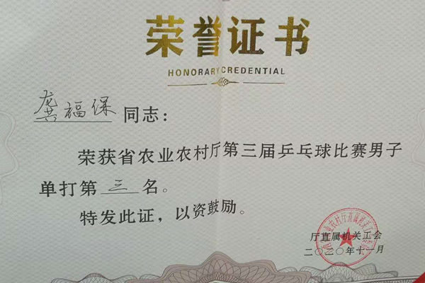 学院派出了5名队员分别参加了混合团体及男、女单打比赛,经过前期的刻苦训练和比赛中的严密排兵布阵,取得了优异的比赛成绩。经过多轮角逐,学院乒乓球代表队获得第三名,龚福保同志获男子单打第三名,余赵林同志获女子单打第二名。