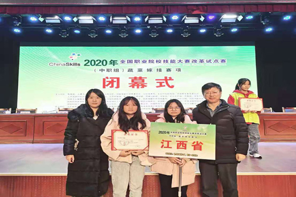 11月28日,2020年全国职业院校技能大赛改革试点赛中职组“蔬菜嫁接”赛项圆满落幕。来自全国32个地区代表队同场竞技,我院19五年园林班龙林清同学代表江西省参赛,经过激烈的角逐,荣获全国三等奖。
