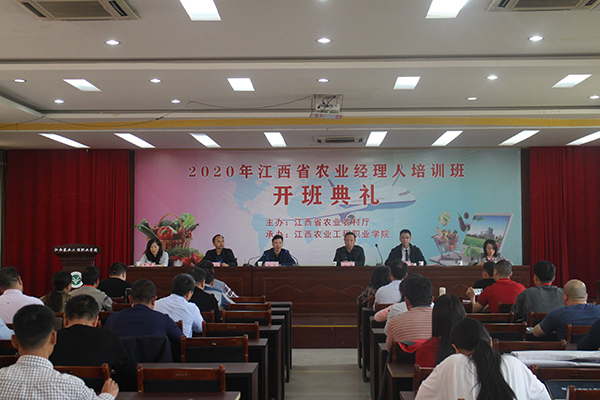 11月17日,2020年江西省农业经理人培训班顺利开班。此次培训班是由江西省农业农村厅主办,江西农业工程职业学院承办。江西省农业农村厅科教处副处长赵健,学院党委副书记、院长杨帆,学院副院长许振华,全国农业经理人共享培训师刘银来团队,培训部全体老师,以及来自全省8个地市50名未来的农业经理人参加开班典礼,学院副院长许振华主持典礼。