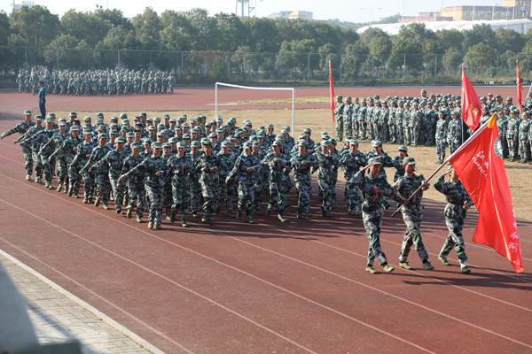 大会在国歌声中拉开了序幕。学院党委书记张新春,部队领导检阅受训方阵,并向同学们亲切问话。32个新生军训受阅方阵队伍整齐、英姿挺拔、精神饱满、斗志昂扬、口号嘹亮,“为学院争光”的口号响彻天空。