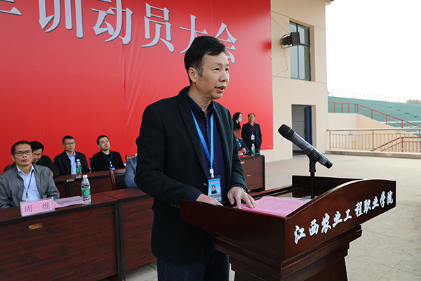 杨帆作在动员讲话中回顾了学院发展历程,希望同学们以校训公诚勤朴为准则,在军训中增强体魄、磨炼意志、服从命令、听从指挥,上好大学军训第一课。