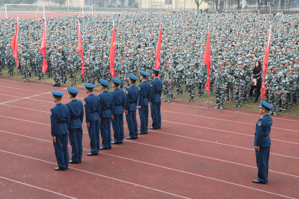 部队首长作了讲话,希望同学们能够主动磨炼意志、锻炼身体、增强体魄,为事业和生活打下健康的基础。教师代表、教官代表、学生代表先后发了言。