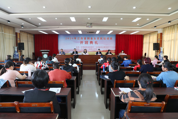10月12日上午,由江西省农业农村厅和江西省妇女联合会主办、江西农业工程职业学院承办的2020年江西省创业女农民培训班开班典礼在学院多功能报告厅举行。省农业农村厅科教处副处长赵健、省妇女联合会发展部部长龙小琴和学院院长杨帆出席仪式并讲话。