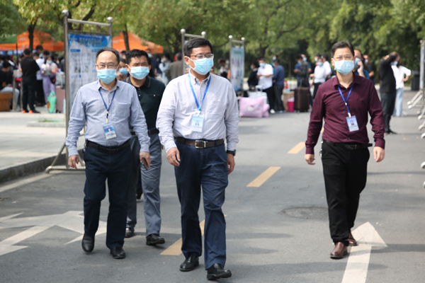 学院党委书记张新春,学院党委副书记、院长杨帆,学院纪委书记钟景辉等院领导到迎新现场检查指导工作,慰问参与迎新工作的师生及工作人员,了解学院新生入学报到情况,并深入学生宿舍现场办公。
