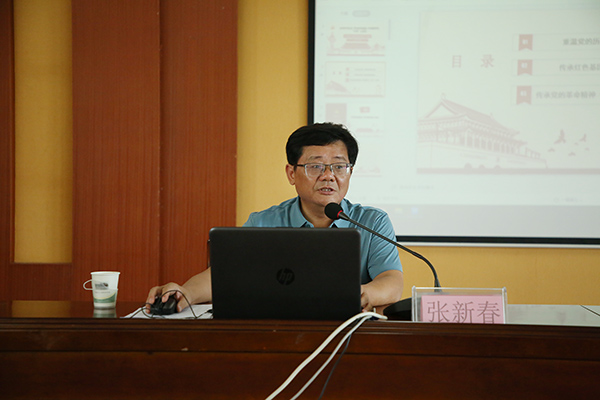 6月30日,学院党委书记张新春在多功能报告厅以“弘扬红色文化 传承红色基因 争做新时代‘六有’大学生”为题,为大学生开展红色文化专题讲座。近两百名高职学生代表参加听课。