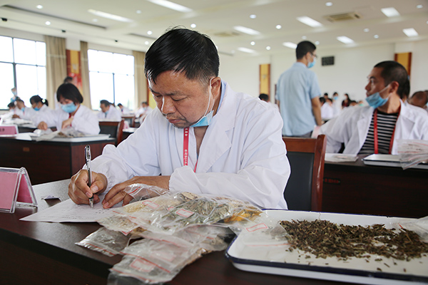 此次进行的药工技能竞赛药材辨识赛项,要求参赛选手在15分钟内通过眼看外观、手摸药感、鼻嗅药性、口尝药味等辨识手段,识别从350种药材中随机抽取的20味中药,写出中药名称。